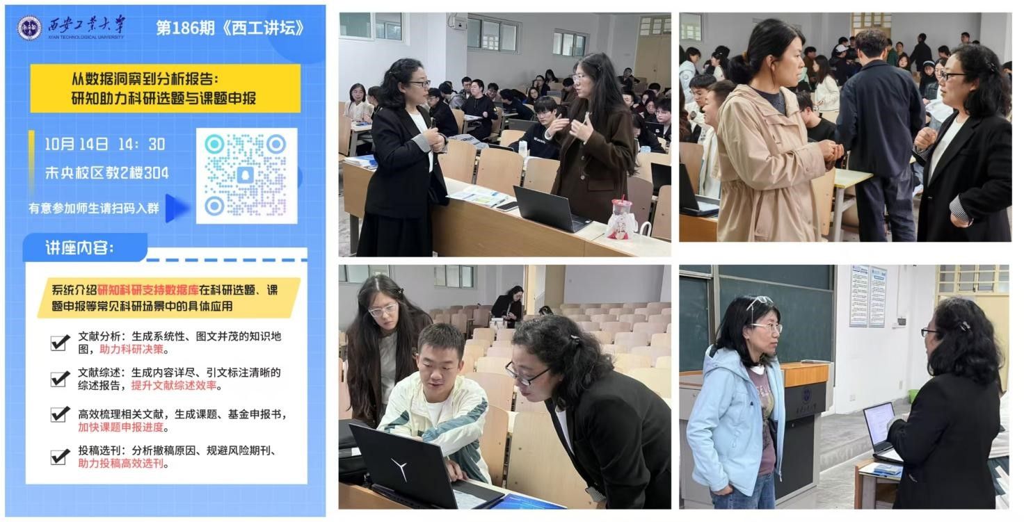 10月14日,“从数据洞察到分析报告:研知助力科研选题与课题申报”专题讲座在未央校区教2楼304室举办。本次活动吸引了近百名师生到场参与。