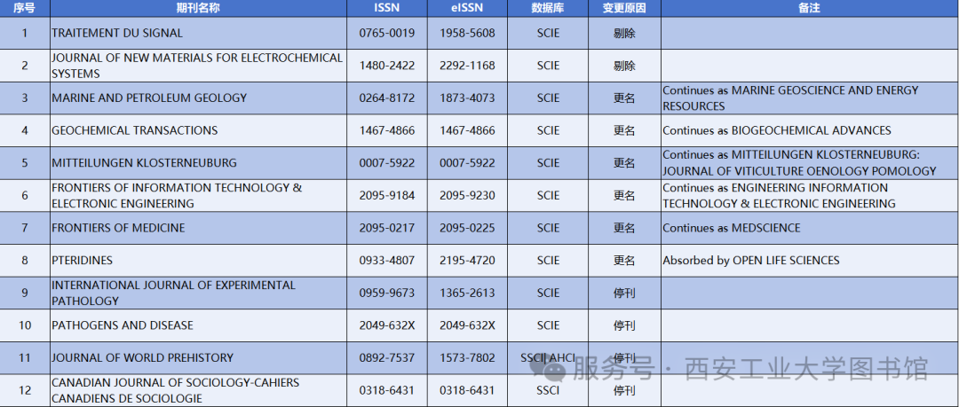 ②2026年3月16日,科睿唯安更新了Web of Science核心期刊目录。本次更新的SCIE期刊目录共包含9436本期刊,SSCI期刊目录共包含3538本期刊,与上期相比共有12本期刊发生变更: